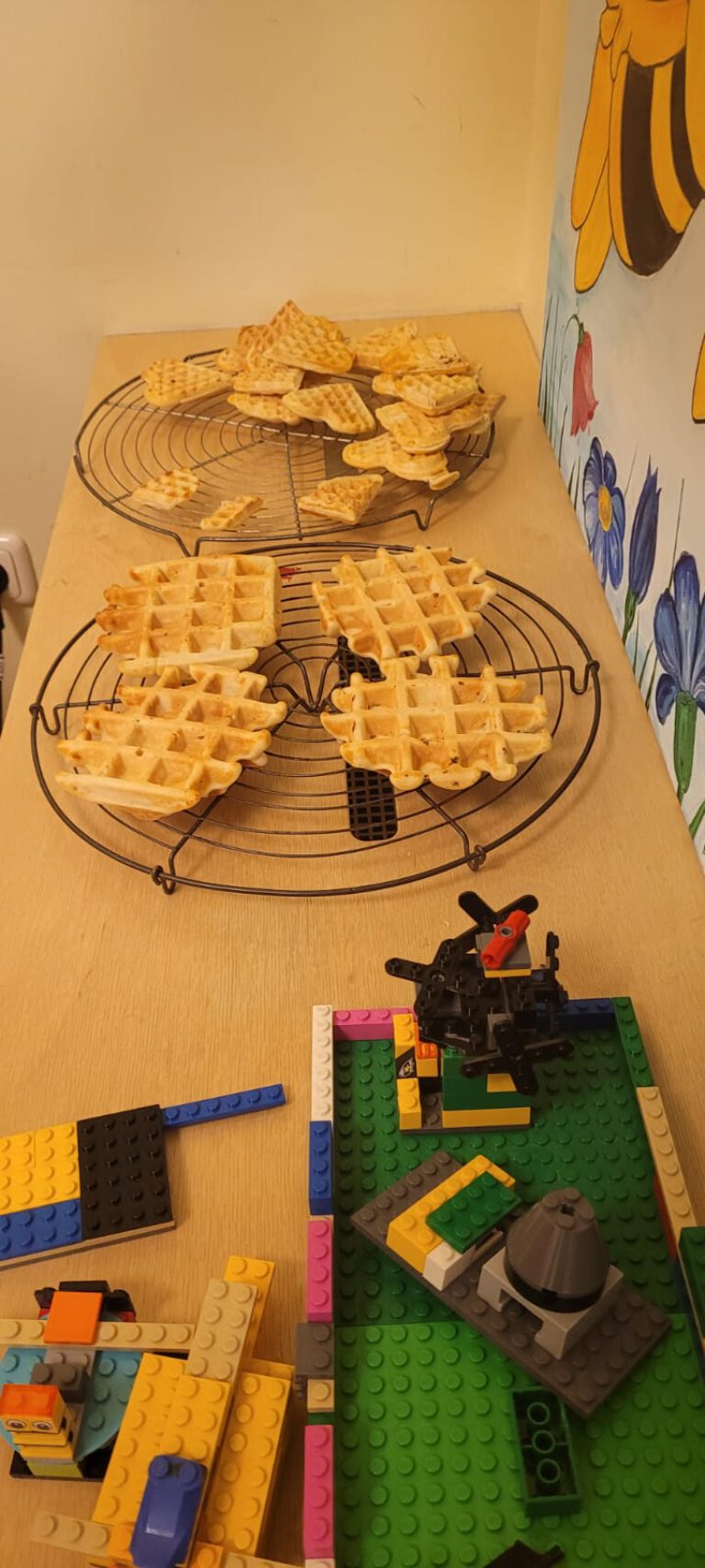 „Es riecht schon nach leckeren Waffeln!“, riefen die Kinder begeistert. Einige wünschten sich direkt, dass dies zu einer Tradition werden sollte. Ob beim Mischen, Backen oder Dekorieren – jedes Kind brachte sich mit Freude ein. Am Ende schmückten Waffeln in Herz- und Rechteckform, serviert mit Apfelmus, Vanille und Puderzucker, unseren Frühstückstisch.