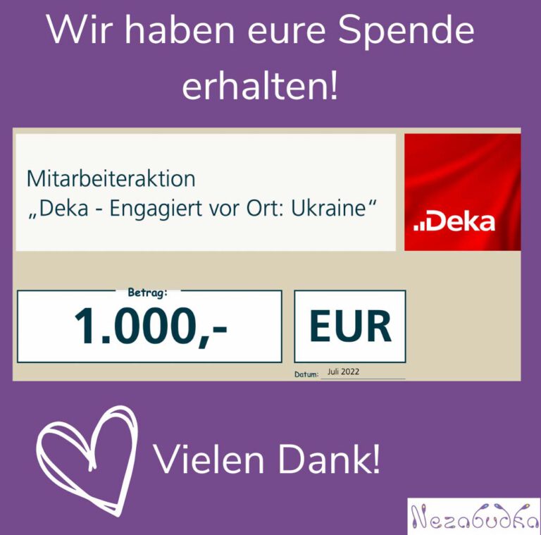 Hiermit möchten wir uns herzlich bei der DekaBank bedanken. Wir haben eine Spende von 1.000 Euro erhalten. Danke, dass ihr uns bei dem Projekt -Ukraine vor Ort unterstützt.