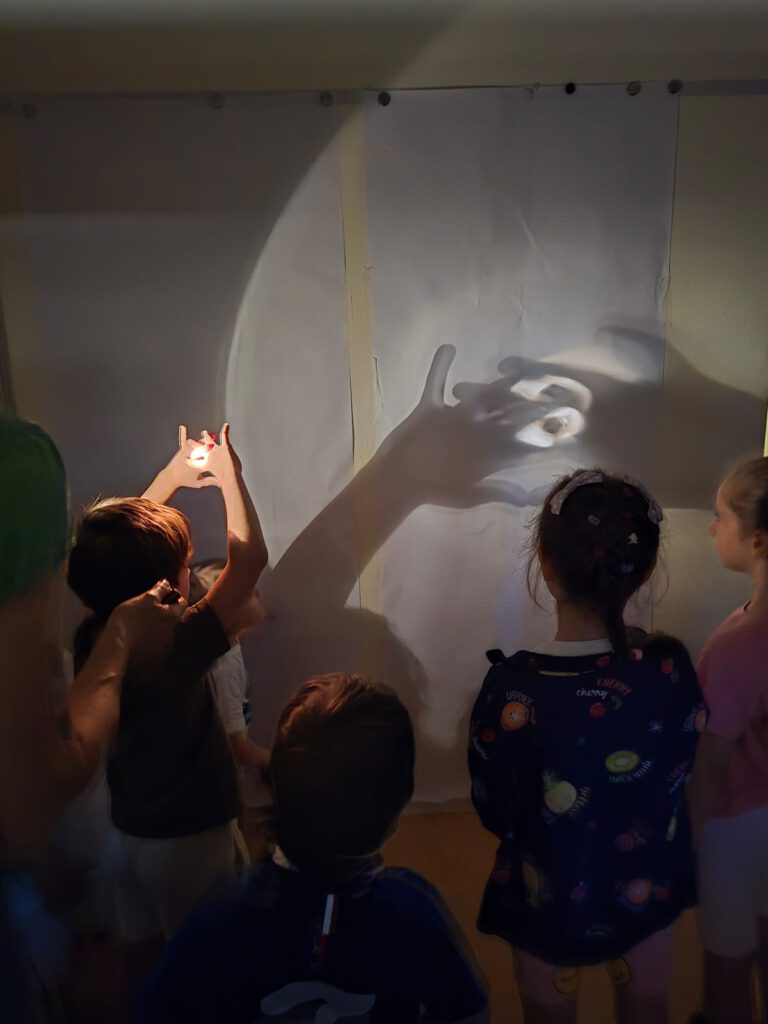 Im Rahmen des Lesefestivals des jungen Literaturhauses „Stadt, Land, Buch“ fand am Dienstag, den 26. Juni, eine besondere Veranstaltung in unserem Kindergarten statt: eine Lesung mit Claudia Weikert aus dem Buch „Nachtspaziergang“. Frau Weikert, die Buch-Illustratorin aus Wiesbaden, las den Kindern daraus vor und zeigte ihnen, wie einfach und schön man zeichnen kann – zum Beispiel, indem wir Schattenumrisse zeichneten. Es war uns eine große Freude, an dieser Veranstaltung teilzunehmen.